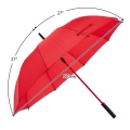 Spacious, premium custom-branded maching color golf advertising umbrella, available in both manual and automatic opening functions. This exceptional umbrella boasts a top-tier pongee with silver coating canopy, along with a black durable fibreglass shaft with 14mm thickness and ribs for maximum durability.